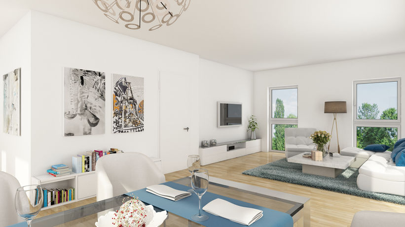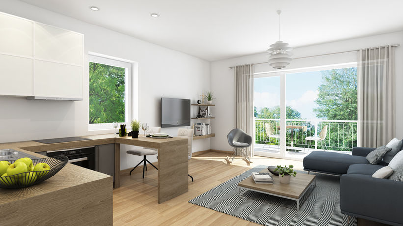 Alle Wohnungen konsequent nach modernen Standards geplant und mitgroßen Fensterflächen die für lichtdurchflutete Räume sorgen.